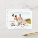 This is a modern stylish photo wedding thank you card using an elegant handwritten script font, printed on a convenient postcard.