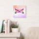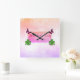 Modern Stylish, Pink Buterfly, Green Clover Square Wall Clock