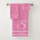 Modern Stylish Pink White Monogram Bath Bath Towel Set