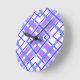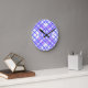Modern Stylish Purple Blue & White Gingham Pattern Round Clock