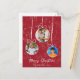 Modern Stylish Red Gold Christmas Family Photo Holiday Postcard
