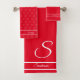 Modern Stylish Bright Red and White Monogram initial and name Bathroom towel set, designed by Sandy Closs