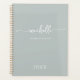 Stylish Modern Feminine Sage Green Glam Monogram Name Script Signature Custom Personalised 2024 or any year Planner. This minimalist delicate plain colour design featuring your first name in a pretty hand lettered style swash tail font calligraphy (or typography),  full name (or family name) and year on sage green or dusty green colour background. Easy to customise it. Great feminine gift for birthday, bridal shower, mother’s day, wedding, business, sweet 16 birthday, back to school, graduation, professional work and for anyone who loves clean minimalist things.