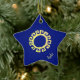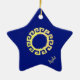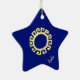 Modern stylish sun drawing on royal blue Ornament. Text can be personalised.