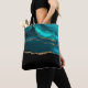 Modern Stylish Teal Agate & Gold Ribbon on Black Tote Bag