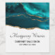 Modern Stylish Teal Agate & Gold Ribbon on White Wine Label
