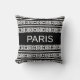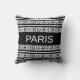 Modern stylish white Paris calligraphy on black Throw Pillow. Black and white stylish striped Throw Pillow.