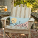 Modern summer colours pink and blue sunshine Relax lumbar pillow for outdoor.