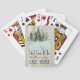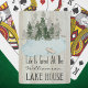 Life is great at the lake fun summer time quote. White wood like background with water design of trees, lake and boat. Monogram with your family name. Perfect way to play poker, go fish or other card games.