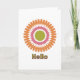 This design features a Modern Sunburst Note Card in orange, mauve and green with a colourful bold three-dimensional font that says: Hello. This folded note card is ideal for saying hello to friends and family or to send a short note to stay in touch. It's available as a standard 5 inch x 7 inch card or in a smaller 4 inch x 5.6 inch size and can be applied to either horizontal or vertical orientations. This design can be scaled smaller for additional customisation and personalisation. The inside of this card is left blank, so there's plenty of room to write a detailed note, or to customise it further to your needs. Sunbursts are an iconic design motif that conveys positive energy and a feeling of renewal. This sunburst design is also available in additional colour variations and additional products, please visit our store to see additional details. Optional white envelopes are also available.