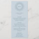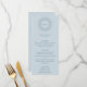 Modern minimalist slate blue sunburst deco frame, menu. Template provides space for names, date and three headings with descriptions in coordinating slate blue colour. Background colour shown in light pastel dusty blue can be customised.