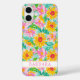 Customize this gorgeous modern sunflowers with pink zinnias painting iPhone 16 plus case with your your name in a trendy modern CAP font in pink on white. It's so beautiful and happy!