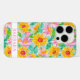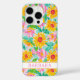 Customize this gorgeous modern sunflowers with pink zinnias painting iPhone 16 pro case with your your name in a trendy modern CAP font in pink on white. It's so beautiful and happy!