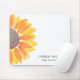 This floral mouse pad is decorated with a yellow watercolor sunflower and modern typography.