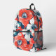 Modern Supersized Floral Blue and Red Monogram Printed Backpack
