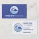 A business card with a logo of a blue modern line art of a swimmer with googles and swim cap swimming among the waves. Perfect for swimming instructors and lifeguards. Personalise easily with your information in the text templates provided.