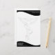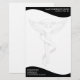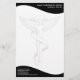 This chiropractic stationery features black swirls along the top and bottom, and a light grey silhouette of a chiropractic angel/caduceus emblem.