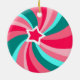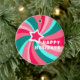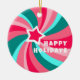 Modern Swirl HAPPY HOLIDAYS CUSTOM Green Pink Ceramic Ornament