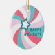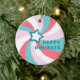 Modern Swirl HAPPY HOLIDAYS CUSTOM Green Pink Ceramic Ornament