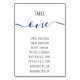 In the upper part, there is the table number written in a navy blue handwriting script and the word Table above, in smaller black caps (hand letters).