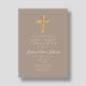 Modern Taupe Cross Religious Boy First Communion Invitation