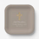 Modern Taupe Religious Cross Boy Confirmation Paper Plates