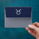 A silver chrome like Taurus Zodiac Sign on a navy blue carbon fibre modern style print background. A modern urban racy design for a great custom gift idea.