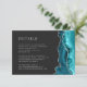 Modern Teal Blue Agate Silver Dark Wedding Details Enclosure Card