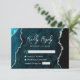 Modern Teal Blue Agate Silver Script Wedding RSVP