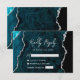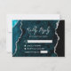 Modern Teal Blue Agate Silver Script Wedding RSVP Card