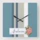 Modern Teal Blue and Tan Striped Floral Square Wall Clock