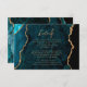 Modern Teal Blue Gold Agate Script Wedding Details Enclosure Card
