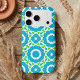 Elevate your tech accessories with this vibrant and intricate geometric iPhone case. The design features a mesmerizing mosaic pattern in refreshing shades of turquoise blue and bright lime green, accented with crisp white lines to create a clean, structured look. Reminiscent of Moroccan tiles or a complex kaleidoscope, this symmetrical print brings a pop of energy that is perfect for summer vibes or adding a modern, artistic touch to your everyday style. This boho-chic design is ideal for anyone who loves bold patterns, fresh color palettes, and unique abstract art.