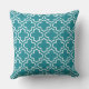 Modern Teal Blue Moroccan Quatrefoil Pattern Cushion