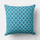Modern Teal Blue Moroccan Quatrefoil Pattern Cushion