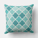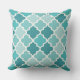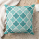 Modern Teal Blue Moroccan Quatrefoil Tile Pattern Cushion