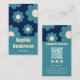 Modern Teal Blue Retro Floral Pattern with QR Code Business Card