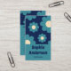 Modern Teal Blue Retro Floral Pattern with QR Code Business Card