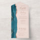 Modern Teal Blue Rose Gold Agate Blush Wedding All In One Invitation