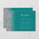 Modern Teal Blue Silver Glitter Wedding Reception Enclosure Card