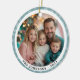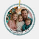 Modern Teal Blue Snowflakes Round Family Photo Ceramic Ornament