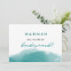 Modern Teal Blue Watercolor Script Bridesmaid Card