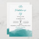 Modern Teal Blue Watercolor Script Wedding Invite is a delicate, highly customizable wedding stationery.