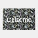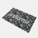 Modern Teal Botanical Pattern White Welcome Doormat. Bold typography.