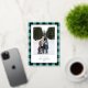 Send holiday greetings with these deluxe photo Christmas cards, featuring your favourite vertical photo set against a hand-drawn light teal green and black buffalo plaid pattern framed by a border real gold foil. Customise your holiday message with a modern lettering style in the editable text area, and add your family name in real gold foil!!! The back of the card provides space for an additional photo and a personalised holiday message