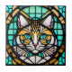 Modern Teal Cat Stained Glass Illustration Ceramic Tile