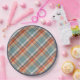 Modern Teal Dark Blue Orange White Plaid Pattern Paper Plate