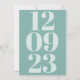 Contemporary style to Invite your guests to save your wedding date with this minimalist typographical design, with your wedding date as a subtle background in numeric form filling the page from top to bottom in pale teal which is repeated on the other side on a darker teal background.  On the front, small simplistic typography in turquoise is overlaid on top of the numbers with your details. The text is easily personalised, including the background numbers which will change simultaneously on both sides.  You can also change text and background colours to better suit your wedding colour scheme if you wish via the customise further option. If you need any help with this please message me.