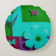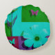 Modern Teal Floral Garden Round Pouf Cushion