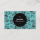 A traditional floral pattern is made modern with a bright teal and dark grey colour scheme. The centred black circle highlights your name or business name on this modern business card template. © 1201AM CREATIVE